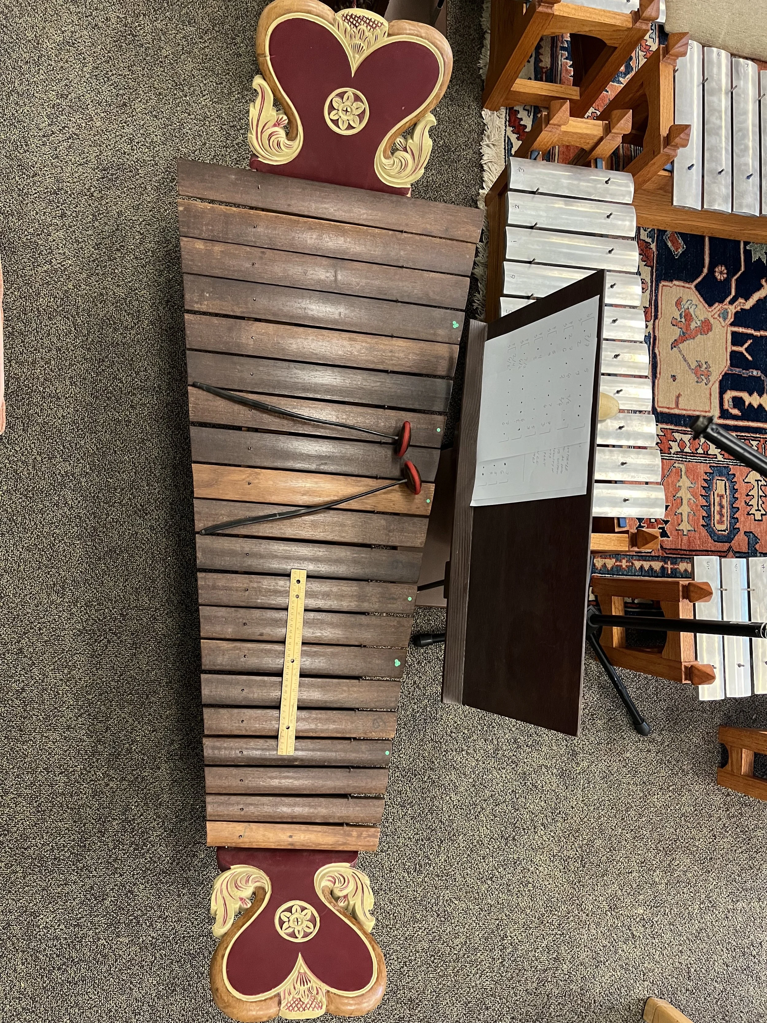 Gongs (4) saron (2) demung (2) kendhang (3) slenthem (1)